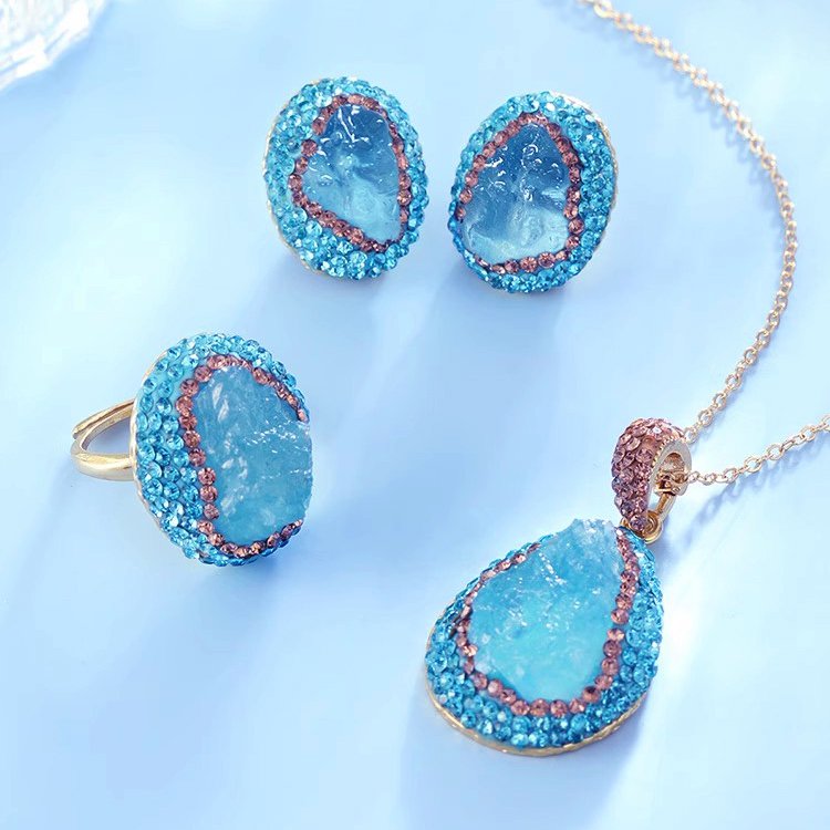 مجموعة القلادة اللامعة الفاخرة على شكل مكعبات السكر