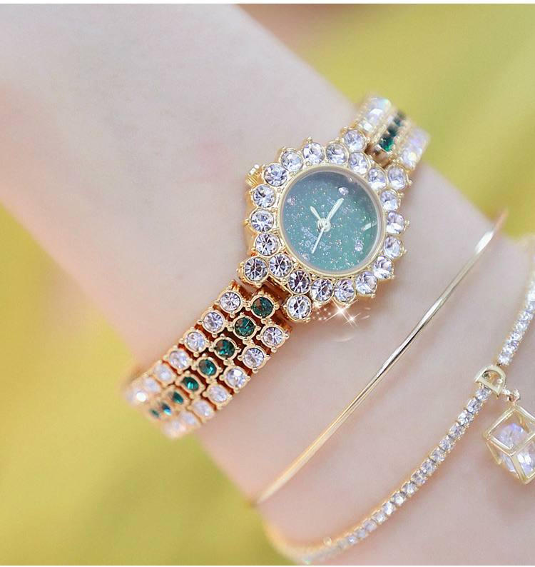 ساعة فاخرة معتقة مرصعة بالألماس للنساء (تصميم مضيئ رائع)