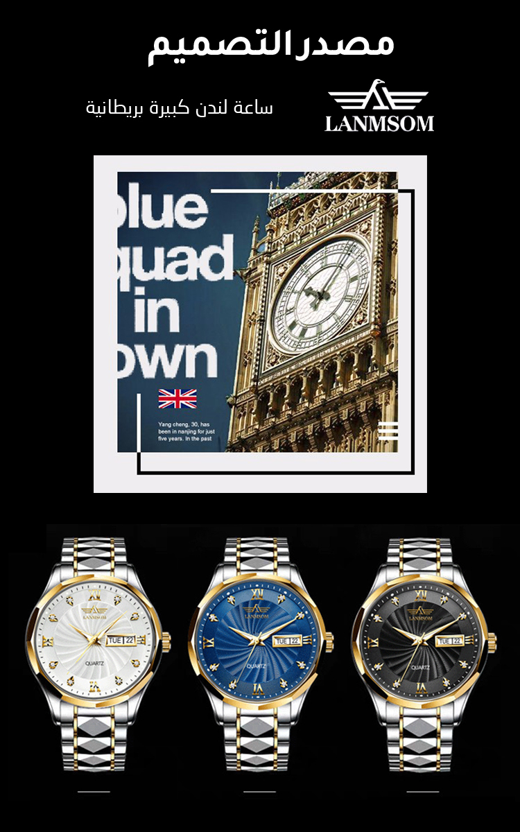 ساعة متألقة لامعة فاخرة للرجال الناجحين
