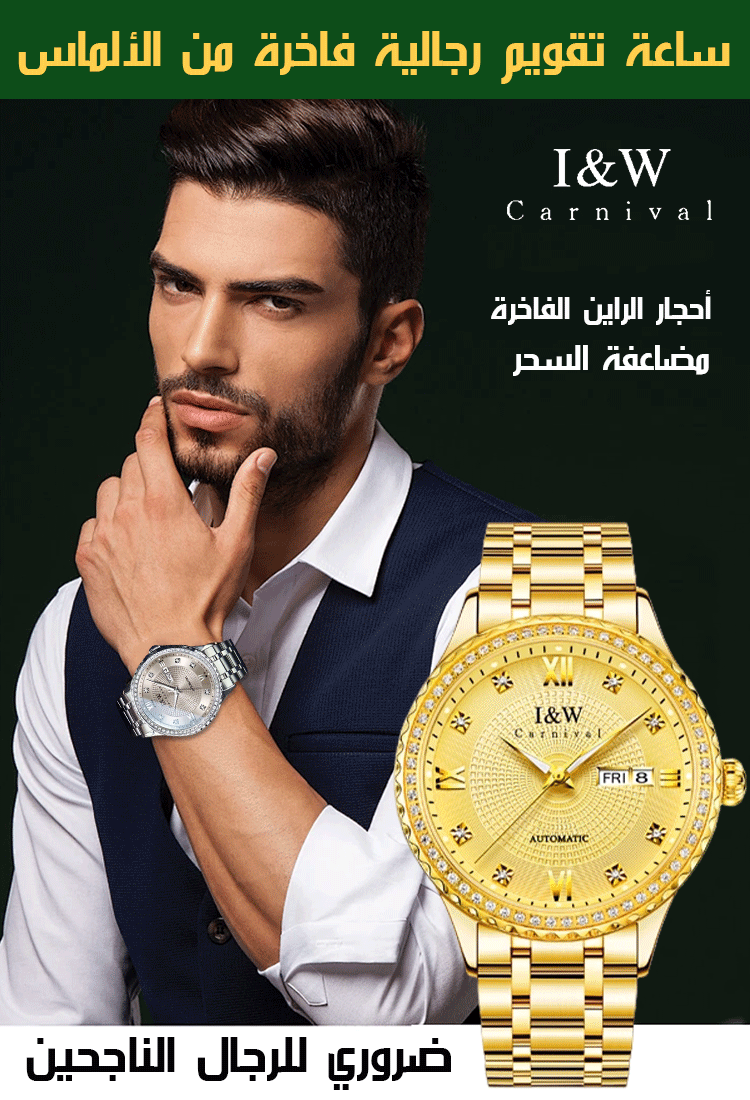 ساعة تقويم رجالية سويسرية فاخرة من الألماس