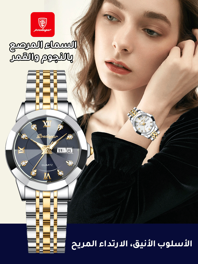 ساعة نسائية مقاومة للماء ومزودة بإضاءة ليلية من سويسرا