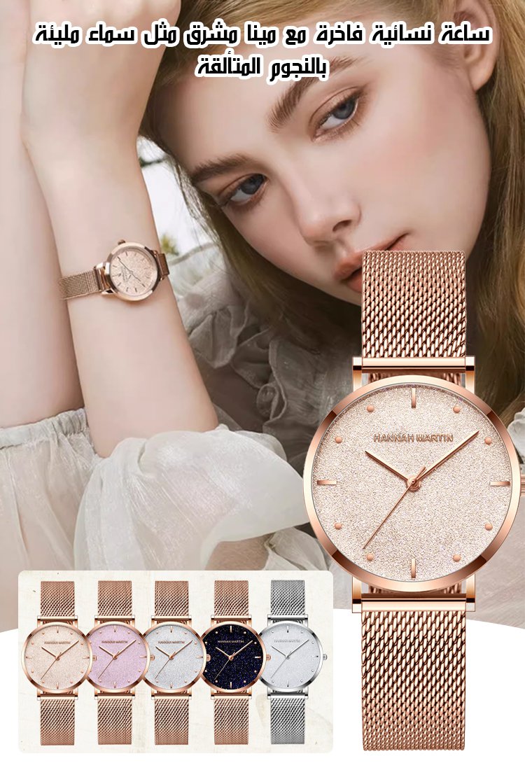 ساعة نسائية فاخرة مع مينا مشرق مثل سماء مليئة بالنجوم المتألقة